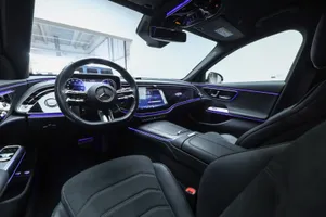 Design: High-tech sølv metallak, AMG eksteriør, AMG interiør, 20" AMG letmetalfælge i multieget design, ARTICO kunstlæder/MICROCUT mikrofiber sort, Taghimmel sort, Multifunktionssportsrat i nappalæder med flad bund, ARTICO kunstlæder på instrumentbord og dørsider (bæltelinje) i sort, Midterkonsol i sort åbenporet asketræ, AMG bundmåtter, Interiørliste i sort piano lak, Ambiente belysning, Tagræling i poleret aluminium, Projektion af Mercedes-Benz stjerne fra sidespejle, Belyste trinlister med logo, Sikkerhed/miljø: Fodgængerbeskyttelse, Tyveripakke PLUS, ISOFIX, Dæktryksovervågning, Tyverisikring varslingssystem, Knæairbag, Udvendig lydgenerator, TIREFIT, Ladekabel (5 meter) til wallbox og offentlig ladning