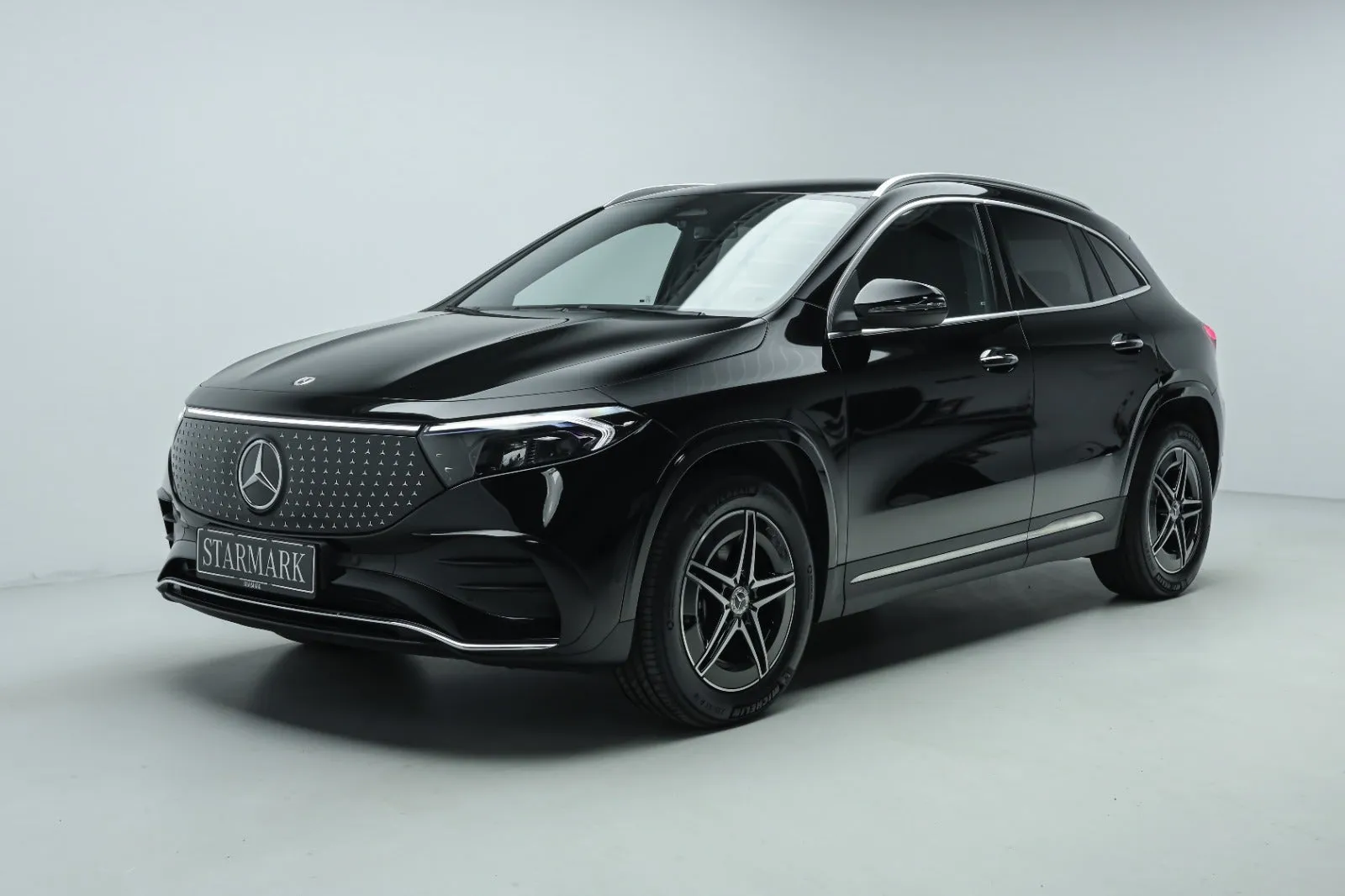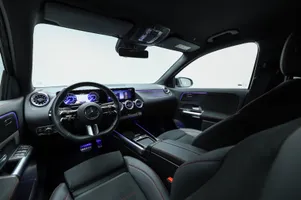 Design: Natsort, AMG Designlinje, 18" AMG letmetalfælge i 5-eget design, ARTICO kunstlæder/MICROCUT mikrofiber sort, Taghimmel sort, Fladbundet multifunktionssportsrat i nappalæder, AMG bundmåtter, Interiørliste med stjernemønster belyst, Interiørlister med belysning, Varmeisolerende og mørktonede ruder, Ambiente belysning (64 farver), Tagræling i poleret aluminium, Belyste trinlister med logo, Sikkerhed/miljø: Fodgængerbeskyttelse, PRE-SAFE, Tyveripakke, ISOFIX, Dæktryksovervågning, Tyverisikring varslingssystem, Knæairbag, Akustik advarsel, TIREFIT, Bagsædeseleindikator, Ladekabel (5 meter) til wallbox og offentlig ladning.