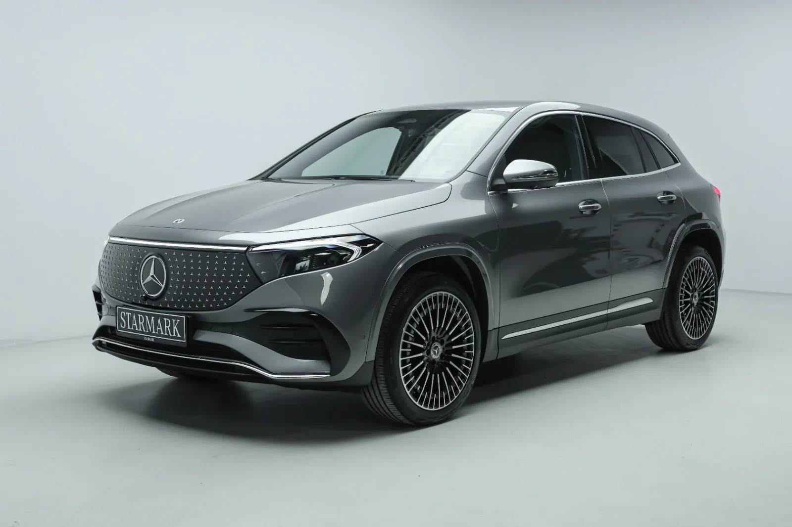 Design: Mountaingrå metallak, AMG Designlinje, 20" AMG letmetalfælge i multieget design, ARTICO kunstlæder/MICROCUT mikrofiber sort, Taghimmel sort, Fladbundet multifunktionssportsrat i nappalæder, AMG bundmåtter, Interiørliste med stjernemønster belyst, Interiørlister med belysning, Varmeisolerende og mørktonede ruder, Ambiente belysning (64 farver), Belyste trinlister med logo, Sikkerhed/miljø: Fodgængerbeskyttelse, ISOFIX, Dæktryksovervågning, Knæairbag, Akustik advarsel, TIREFIT, Bagsædeseleindikator, Ladekabel (5 meter) til wallbox og offentlig ladning