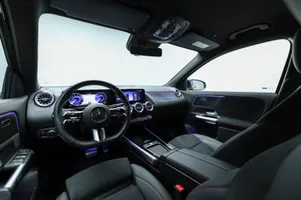Design: Natsort, AMG Designlinje, 18" AMG letmetalfælge i 5-eget design, ARTICO kunstlæder/MICROCUT mikrofiber sort, Taghimmel sort, Fladbundet multifunktionssportsrat i nappalæder, AMG bundmåtter, Interiørliste med stjernemønster belyst, Interiørlister med belysning, Varmeisolerende og mørktonede ruder, Ambiente belysning (64 farver), Tagræling i poleret aluminium, Belyste trinlister med logo, Sikkerhed/miljø: Fodgængerbeskyttelse, PRE-SAFE, Tyveripakke, ISOFIX, Dæktryksovervågning, Tyverisikring varslingssystem, Knæairbag, Akustik advarsel, TIREFIT, Bagsædeseleindikator, Ladekabel (5 meter) til wallbox og offentlig ladning.