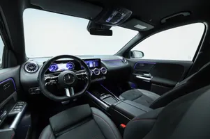 Design: Natsort, AMG Designlinje, 18" AMG letmetalfælge i 5-eget design, ARTICO kunstlæder/MICROCUT mikrofiber sort, Taghimmel sort, Fladbundet multifunktionssportsrat i nappalæder, AMG bundmåtter, Interiørliste med stjernemønster belyst, Interiørlister med belysning, Varmeisolerende og mørktonede ruder, Ambiente belysning (64 farver), Tagræling i poleret aluminium, Belyste trinlister med logo, Sikkerhed/miljø: Fodgængerbeskyttelse, PRE-SAFE, Tyveripakke, ISOFIX, Dæktryksovervågning, Tyverisikring varslingssystem, Knæairbag, Akustik advarsel, TIREFIT, Bagsædeseleindikator, Ladekabel (5 meter) til wallbox og offentlig ladning.