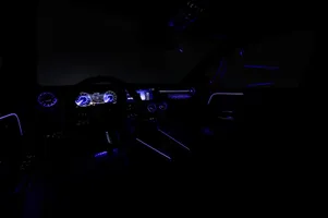 Design: Natsort, AMG Designlinje, 18" AMG letmetalfælge i 5-eget design, ARTICO kunstlæder/MICROCUT mikrofiber sort, Taghimmel sort, Fladbundet multifunktionssportsrat i nappalæder, AMG bundmåtter, Interiørliste med stjernemønster belyst, Interiørlister med belysning, Varmeisolerende og mørktonede ruder, Ambiente belysning (64 farver), Tagræling i poleret aluminium, Belyste trinlister med logo, Sikkerhed/miljø: Fodgængerbeskyttelse, PRE-SAFE, Tyveripakke, ISOFIX, Dæktryksovervågning, Tyverisikring varslingssystem, Knæairbag, Akustik advarsel, TIREFIT, Bagsædeseleindikator, Ladekabel (5 meter) til wallbox og offentlig ladning