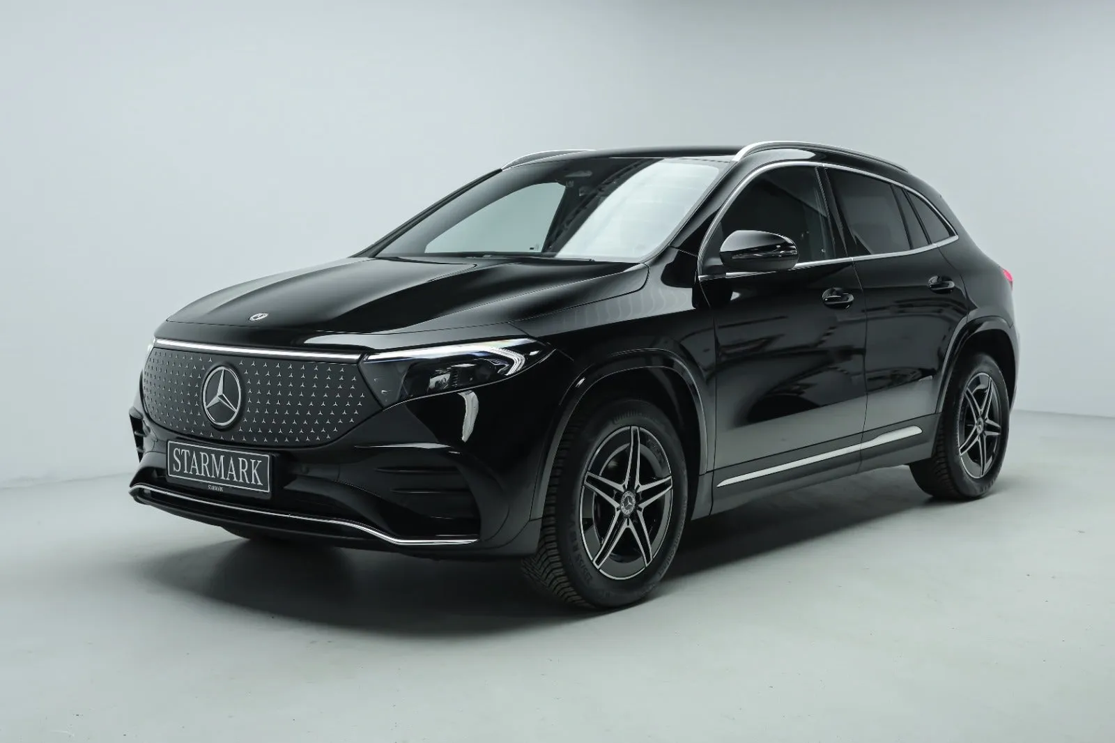 Design: Natsort, AMG Designlinje, 18" AMG letmetalfælge i 5-eget design, ARTICO kunstlæder/MICROCUT mikrofiber sort, Taghimmel sort, Fladbundet multifunktionssportsrat i nappalæder, AMG bundmåtter, Interiørliste med stjernemønster belyst, Interiørlister med belysning, Varmeisolerende og mørktonede ruder, Ambiente belysning (64 farver), Tagræling i poleret aluminium, Belyste trinlister med logo, Sikkerhed/miljø: Fodgængerbeskyttelse, PRE-SAFE, Tyveripakke, ISOFIX, Dæktryksovervågning, Tyverisikring varslingssystem, Knæairbag, Akustik advarsel, TIREFIT, Bagsædeseleindikator, Ladekabel (5 meter) til wallbox og offentlig ladning.