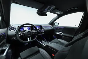 Design: Natsort, AMG Designlinje, 18" AMG letmetalfælge i 5-eget design, ARTICO kunstlæder/MICROCUT mikrofiber sort, Taghimmel sort, Fladbundet multifunktionssportsrat i nappalæder, AMG bundmåtter, Interiørliste med stjernemønster belyst, Interiørlister med belysning, Varmeisolerende og mørktonede ruder, Ambiente belysning (64 farver), Tagræling i poleret aluminium, Belyste trinlister med logo, Sikkerhed/miljø: Fodgængerbeskyttelse, PRE-SAFE, Tyveripakke, ISOFIX, Dæktryksovervågning, Tyverisikring varslingssystem, Knæairbag, Akustik advarsel, TIREFIT, Bagsædeseleindikator, Ladekabel (5 meter) til wallbox og offentlig ladning.