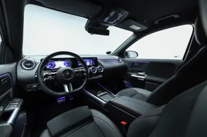 Design: Natsort, AMG Designlinje, 18" AMG letmetalfælge i 5-eget design, ARTICO kunstlæder/MICROCUT mikrofiber sort, Taghimmel sort, Fladbundet multifunktionssportsrat i nappalæder, AMG bundmåtter, Interiørliste med stjernemønster belyst, Interiørlister med belysning, Varmeisolerende og mørktonede ruder, Ambiente belysning (64 farver), Tagræling i poleret aluminium, Belyste trinlister med logo, Sikkerhed/miljø: Fodgængerbeskyttelse, PRE-SAFE, Tyveripakke, ISOFIX, Dæktryksovervågning, Tyverisikring varslingssystem, Knæairbag, Akustik advarsel, TIREFIT, Bagsædeseleindikator, Ladekabel (5 meter) til wallbox og offentlig ladning.