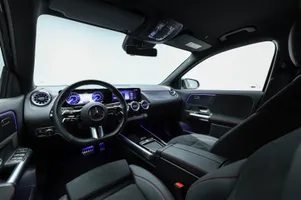 Design: Natsort, AMG Designlinje, 18" AMG letmetalfælge i 5-eget design, ARTICO kunstlæder/MICROCUT mikrofiber sort, Taghimmel sort, Fladbundet multifunktionssportsrat i nappalæder, AMG bundmåtter, Interiørliste med stjernemønster belyst, Interiørlister med belysning, Varmeisolerende og mørktonede ruder, Ambiente belysning (64 farver), Tagræling i poleret aluminium, Belyste trinlister med logo, Sikkerhed/miljø: Fodgængerbeskyttelse, PRE-SAFE, Tyveripakke, ISOFIX, Dæktryksovervågning, Tyverisikring varslingssystem, Knæairbag, Akustik advarsel, TIREFIT, Bagsædeseleindikator, Ladekabel (5 meter) til wallbox og offentlig ladning.