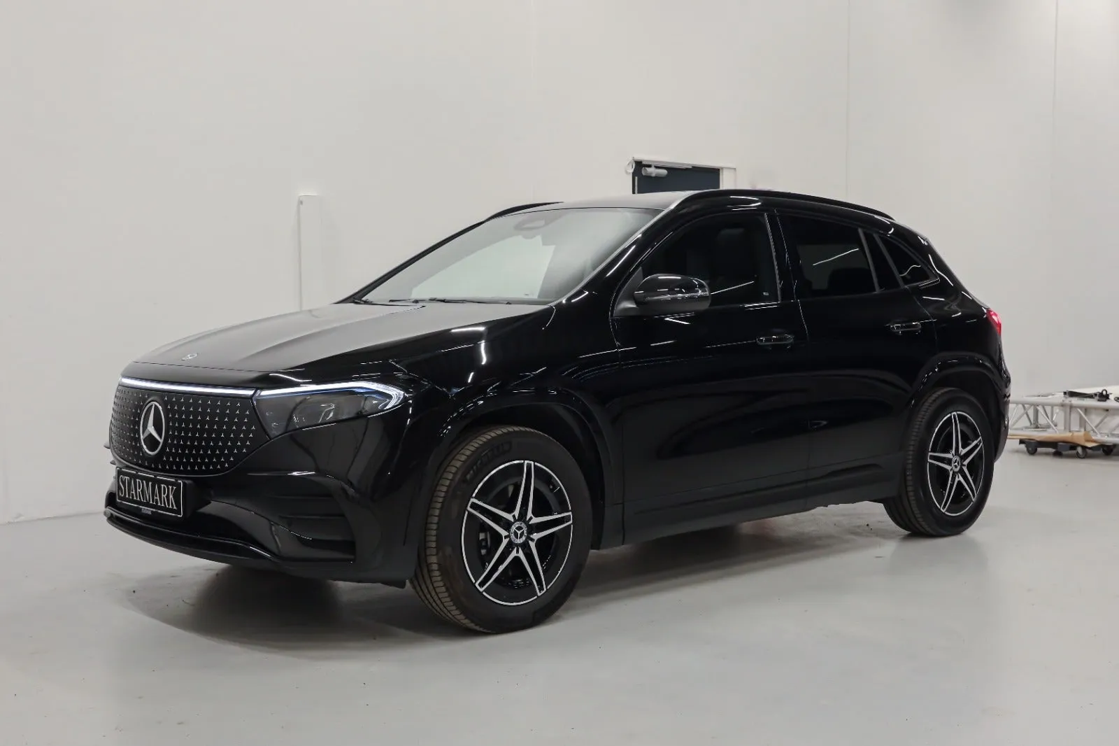 Design: Natsort, AMG Designlinje, Nightpakke, 18" AMG letmetalfælge i 5-eget design, ARTICO kunstlæder/MICROCUT mikrofiber sort, Taghimmel sort, Fladbundet multifunktionssportsrat i nappalæder, AMG bundmåtter, Interiørliste med stjernemønster belyst, Interiørlister med belysning, Varmeisolerende og mørktonede ruder, Ambiente belysning (64 farver), Tagræling i sort, Belyste trinlister med logo, Sikkerhed/miljø: Fodgængerbeskyttelse, PRE-SAFE, Tyveripakke, ISOFIX, Dæktryksovervågning, Tyverisikring varslingssystem, Knæairbag, Akustik advarsel, TIREFIT, Bagsædeseleindikator, Ladekabel (5 meter) til wallbox og offentlig ladning
