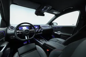 Design: Natsort, AMG Designlinje, 18" AMG letmetalfælge i 5-eget design, ARTICO kunstlæder/MICROCUT mikrofiber sort, Taghimmel sort, Fladbundet multifunktionssportsrat i nappalæder, AMG bundmåtter, Interiørliste med stjernemønster belyst, Interiørlister med belysning, Varmeisolerende og mørktonede ruder, Ambiente belysning (64 farver), Tagræling i poleret aluminium, Belyste trinlister med logo, Sikkerhed/miljø: Fodgængerbeskyttelse, PRE-SAFE, Tyveripakke, ISOFIX, Dæktryksovervågning, Tyverisikring varslingssystem, Knæairbag, Akustik advarsel, TIREFIT, Bagsædeseleindikator, Ladekabel (5 meter) til wallbox og offentlig ladning