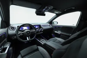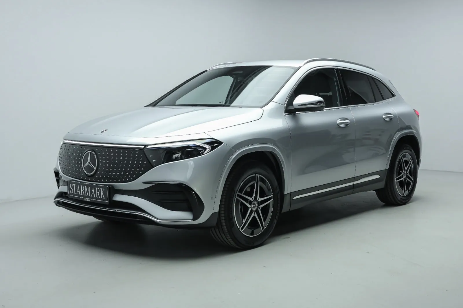 Design: High-tech sølv metallak, AMG Designlinje, 18" AMG letmetalfælge i 5-eget design, ARTICO kunstlæder/MICROCUT mikrofiber sort, Taghimmel sort, Fladbundet multifunktionssportsrat i nappalæder, AMG bundmåtter, Interiørliste med stjernemønster belyst, Interiørlister med belysning, Varmeisolerende og mørktonede ruder, Ambiente belysning (64 farver), Tagræling i poleret aluminium, Belyste trinlister med logo, Sikkerhed/miljø: Fodgængerbeskyttelse, PRE-SAFE, Tyveripakke, ISOFIX, Dæktryksovervågning, Tyverisikring varslingssystem, Knæairbag, Akustik advarsel, TIREFIT, Bagsædeseleindikator, Ladekabel (5 meter) til wallbox og offentlig ladning.
