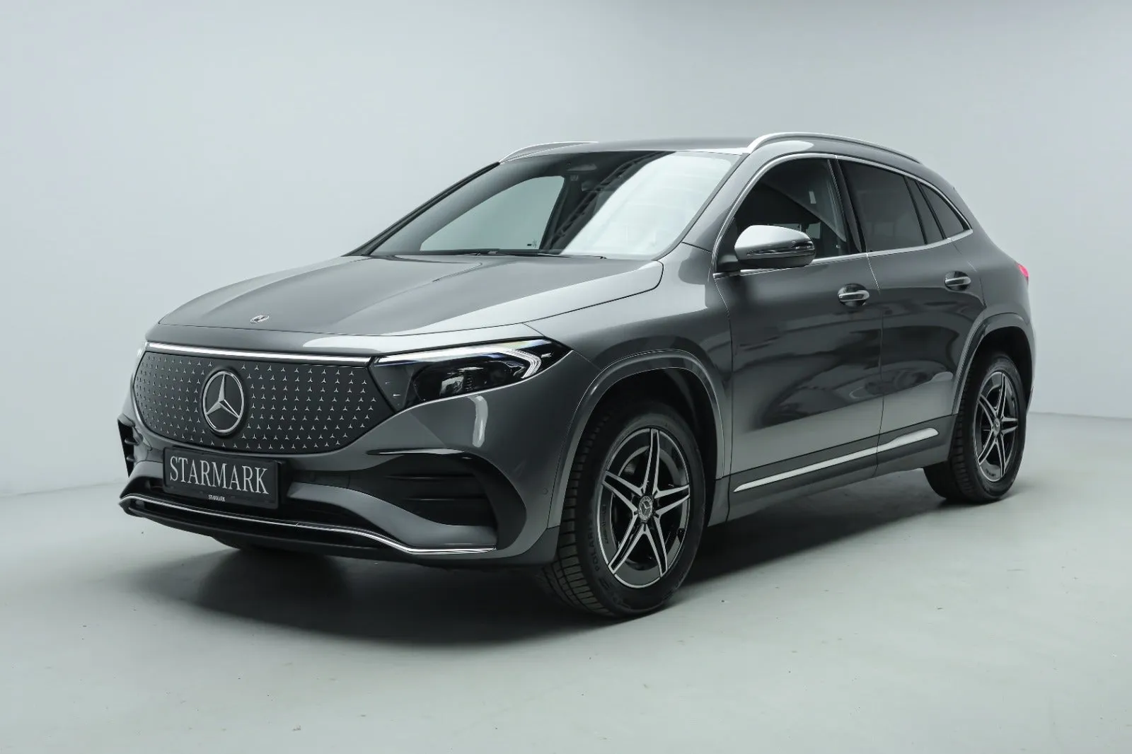 Design: Mountaingrå metallak, AMG Designlinje, 18" AMG letmetalfælge i 5-eget design, ARTICO kunstlæder/MICROCUT mikrofiber sort, Taghimmel sort, Fladbundet multifunktionssportsrat i nappalæder, AMG bundmåtter, Interiørliste med stjernemønster belyst, Interiørlister med belysning, Varmeisolerende og mørktonede ruder, Ambiente belysning (64 farver), Tagræling i poleret aluminium, Belyste trinlister med logo, Sikkerhed/miljø: Fodgængerbeskyttelse, PRE-SAFE, Tyveripakke, ISOFIX, Dæktryksovervågning, Tyverisikring varslingssystem, Knæairbag, Akustik advarsel, TIREFIT, Bagsædeseleindikator, Ladekabel (5 meter) til wallbox og offentlig ladning.