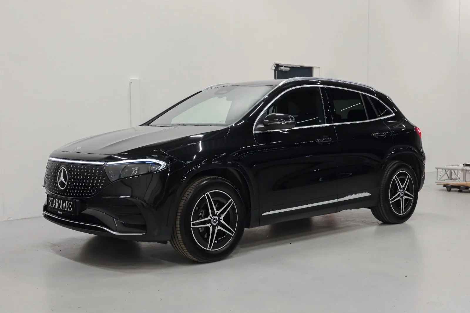 Design: Cosmossort metallak, AMG Designlinje, 18" AMG letmetalfælge i 5-eget design, ARTICO kunstlæder/MICROCUT mikrofiber sort, Taghimmel sort, Fladbundet multifunktionssportsrat i nappalæder, AMG bundmåtter, Interiørliste med stjernemønster belyst, Interiørlister med belysning, Varmeisolerende og mørktonede ruder, Ambiente belysning (64 farver), Tagræling i poleret aluminium, Belyste trinlister med logo, Sikkerhed/miljø: Fodgængerbeskyttelse, PRE-SAFE, Tyveripakke, ISOFIX, Dæktryksovervågning, Tyverisikring varslingssystem, Knæairbag, Akustik advarsel, TIREFIT, Bagsædeseleindikator, Ladekabel (5 meter) til wallbox og offentlig ladning.