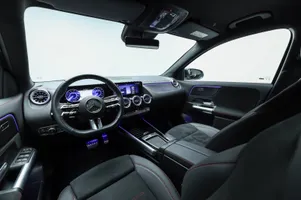 Design: Natsort, AMG Designlinje, 18" AMG letmetalfælge i 5-eget design, ARTICO kunstlæder/MICROCUT mikrofiber sort, Taghimmel sort, Fladbundet multifunktionssportsrat i nappalæder, AMG bundmåtter, Interiørliste med stjernemønster belyst, Interiørlister med belysning, Varmeisolerende og mørktonede ruder, Ambiente belysning (64 farver), Tagræling i poleret aluminium, Belyste trinlister med logo, Sikkerhed/miljø: Fodgængerbeskyttelse, PRE-SAFE, Tyveripakke, ISOFIX, Dæktryksovervågning, Tyverisikring varslingssystem, Knæairbag, Akustik advarsel, TIREFIT, Bagsædeseleindikator, Ladekabel (5 meter) til wallbox og offentlig ladning