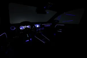 Design: Natsort, AMG Designlinje, 18" AMG letmetalfælge i 5-eget design, ARTICO kunstlæder/MICROCUT mikrofiber sort, Taghimmel sort, Fladbundet multifunktionssportsrat i nappalæder, AMG bundmåtter, Interiørliste med stjernemønster belyst, Interiørlister med belysning, Varmeisolerende og mørktonede ruder, Ambiente belysning (64 farver), Tagræling i poleret aluminium, Belyste trinlister med logo, Sikkerhed/miljø: Fodgængerbeskyttelse, PRE-SAFE, Tyveripakke, ISOFIX, Dæktryksovervågning, Tyverisikring varslingssystem, Knæairbag, Akustik advarsel, TIREFIT, Bagsædeseleindikator, Ladekabel (5 meter) til wallbox og offentlig ladning.