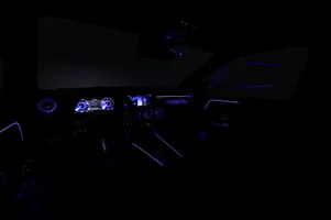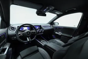 Design: Natsort, AMG Designlinje, 18" AMG letmetalfælge i 5-eget design, ARTICO kunstlæder/MICROCUT mikrofiber sort, Taghimmel sort, Fladbundet multifunktionssportsrat i nappalæder, AMG bundmåtter, Interiørliste med stjernemønster belyst, Interiørlister med belysning, Varmeisolerende og mørktonede ruder, Ambiente belysning (64 farver), Tagræling i poleret aluminium, Belyste trinlister med logo, Sikkerhed/miljø: Fodgængerbeskyttelse, PRE-SAFE, Tyveripakke, ISOFIX, Dæktryksovervågning, Tyverisikring varslingssystem, Knæairbag, Akustik advarsel, TIREFIT, Bagsædeseleindikator, Ladekabel (5 meter) til wallbox og offentlig ladning.