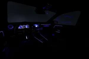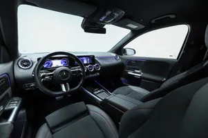 Design: Natsort, AMG Designlinje, 18" AMG letmetalfælge i 5-eget design, ARTICO kunstlæder/MICROCUT mikrofiber sort, Taghimmel sort, Fladbundet multifunktionssportsrat i nappalæder, AMG bundmåtter, Interiørliste med stjernemønster belyst, Interiørlister med belysning, Varmeisolerende og mørktonede ruder, Ambiente belysning (64 farver), Tagræling i poleret aluminium, Belyste trinlister med logo, Sikkerhed/miljø: Fodgængerbeskyttelse, PRE-SAFE, Tyveripakke, ISOFIX, Dæktryksovervågning, Tyverisikring varslingssystem, Knæairbag, Akustik advarsel, TIREFIT, Bagsædeseleindikator, Ladekabel (5 meter) til wallbox og offentlig ladning.