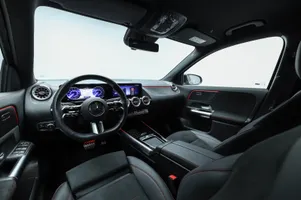 Design: Natsort, AMG Designlinje, 18" AMG letmetalfælge i 5-eget design, ARTICO kunstlæder/MICROCUT mikrofiber sort, Taghimmel sort, Fladbundet multifunktionssportsrat i nappalæder, AMG bundmåtter, Interiørliste med stjernemønster belyst, Interiørlister med belysning, Varmeisolerende og mørktonede ruder, Ambiente belysning (64 farver), Tagræling i poleret aluminium, Belyste trinlister med logo, Sikkerhed/miljø: Fodgængerbeskyttelse, PRE-SAFE, Tyveripakke, ISOFIX, Dæktryksovervågning, Tyverisikring varslingssystem, Knæairbag, Akustik advarsel, TIREFIT, Bagsædeseleindikator, Ladekabel (5 meter) til wallbox og offentlig ladning.