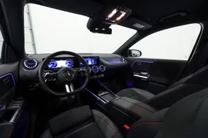 Design: Cosmossort metallak, AMG Designlinje, 19" AMG letmetalfælge i 5-dobbelt eget design, ARTICO kunstlæder/MICROCUT mikrofiber sort, Taghimmel sort, Fladbundet multifunktionssportsrat i nappalæder, AMG bundmåtter, Interiørliste med stjernemønster belyst, Interiørlister med belysning, Varmeisolerende og mørktonede ruder, Ambiente belysning (64 farver), Belyste trinlister med logo, Sikkerhed/miljø: Fodgængerbeskyttelse, ISOFIX, Dæktryksovervågning, Knæairbag, Akustik advarsel, TIREFIT, Bagsædeseleindikator, Ladekabel (5 meter) til wallbox og offentlig ladning.