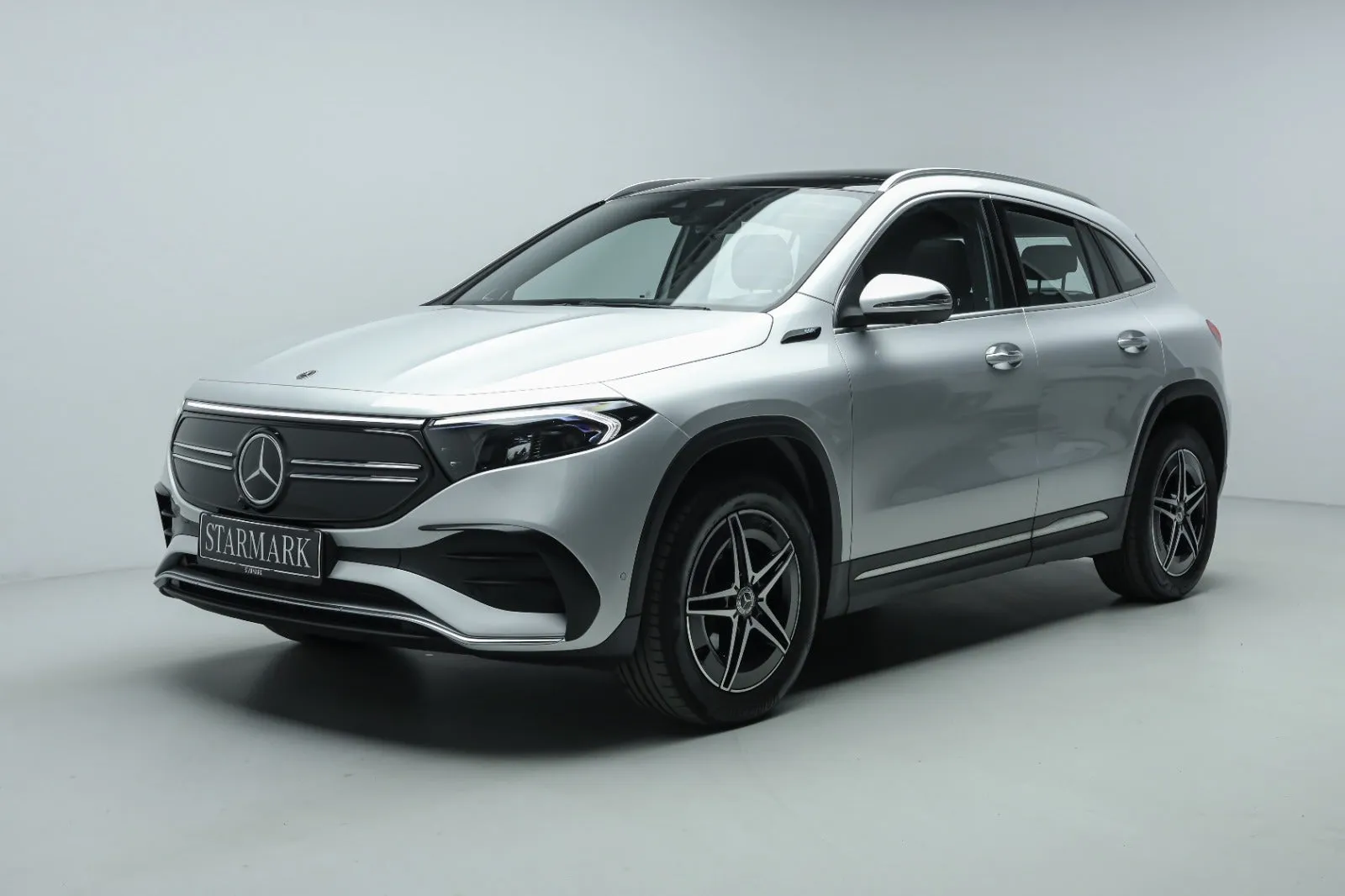 Design: Iridiumsølv metallak, AMG Designlinje, 18" AMG letmetalfælge i 5-eget design, ARTICO kunstlæder/MICROCUT mikrofiber sort, Taghimmel sort, Fladbundet multifunktionssportsrat i nappalæder, AMG bundmåtter, Interiørlister i børstet aluminium, Ambiente belysning (64 farver), Tagræling i poleret aluminium, Projektion af logo, Belyste trinlister med logo, Sikkerhed/miljø: Fodgængerbeskyttelse, Tyveripakke, ISOFIX, Dæktryksovervågning, Tyverisikring varslingssystem, Side airbags bag, Knæairbag, Akustik advarsel, TIREFIT, Bagsædeseleindikator, Ladekabel (5 meter) til wallbox og offentlig ladning
