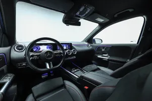 Design: Spectralblå metallak, AMG Designlinje, 18" AMG letmetalfælge i 5-eget design, ARTICO kunstlæder/MICROCUT mikrofiber sort, Taghimmel sort, Fladbundet multifunktionssportsrat i nappalæder, AMG bundmåtter, Interiørliste med stjernemønster belyst, Interiørlister med belysning, Varmeisolerende og mørktonede ruder, Ambiente belysning (64 farver), Tagræling i poleret aluminium, Projektion af logo, Belyste trinlister med logo, Sikkerhed/miljø: Fodgængerbeskyttelse, PRE-SAFE, Tyveripakke, ISOFIX, Dæktryksovervågning, Tyverisikring varslingssystem, Knæairbag, Akustik advarsel, TIREFIT, Bagsædeseleindikator, Ladekabel (5 meter) til wallbox og offentlig ladning.