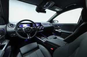 Design: Mountaingrå metallak, Progressive designlinje, 19" AMG letmetalfælge i 5-dobbelt eget design, ARTICO kunstlæder sort, Taghimmel sort, Multifunktionssportsrat i nappalæder, Velourmåtter, Interiørliste med stjernemønster belyst, Interiørlister med belysning, Varmeisolerende og mørktonede ruder, Ambiente belysning (64 farver), Tagræling i poleret aluminium, Belyste trinlister med logo, Sikkerhed/miljø: Fodgængerbeskyttelse, ISOFIX, Dæktryksovervågning, Knæairbag, Akustik advarsel, TIREFIT, Bagsædeseleindikator, Ladekabel (5 meter) til wallbox og offentlig ladning.