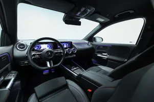 Design: Natsort, AMG Designlinje, 18" AMG letmetalfælge i 5-eget design, ARTICO kunstlæder/MICROCUT mikrofiber sort, Taghimmel sort, Fladbundet multifunktionssportsrat i nappalæder, AMG bundmåtter, Interiørliste med stjernemønster belyst, Interiørlister med belysning, Varmeisolerende og mørktonede ruder, Ambiente belysning (64 farver), Tagræling i poleret aluminium, Belyste trinlister med logo, Sikkerhed/miljø: Fodgængerbeskyttelse, PRE-SAFE, Tyveripakke, ISOFIX, Dæktryksovervågning, Tyverisikring varslingssystem, Knæairbag, Akustik advarsel, TIREFIT, Bagsædeseleindikator, Ladekabel (5 meter) til wallbox og offentlig ladning.