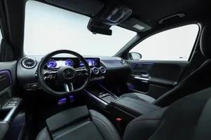 Design: Cosmossort metallak, AMG Designlinje, 18" AMG letmetalfælge i 5-eget design, ARTICO kunstlæder/MICROCUT mikrofiber sort, Taghimmel sort, Fladbundet multifunktionssportsrat i nappalæder, AMG bundmåtter, Interiørliste med stjernemønster belyst, Interiørlister med belysning, Varmeisolerende og mørktonede ruder, Ambiente belysning (64 farver), Tagræling i poleret aluminium, Belyste trinlister med logo, Sikkerhed/miljø: Fodgængerbeskyttelse, PRE-SAFE, Tyveripakke, ISOFIX, Dæktryksovervågning, Tyverisikring varslingssystem, Knæairbag, Akustik advarsel, TIREFIT, Bagsædeseleindikator, Ladekabel (5 meter) til wallbox og offentlig ladning.
