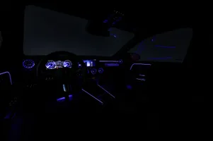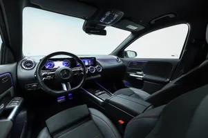 Design: Cosmossort metallak, AMG Designlinje, 18" AMG letmetalfælge i 5-eget design, ARTICO kunstlæder/MICROCUT mikrofiber sort, Taghimmel sort, Fladbundet multifunktionssportsrat i nappalæder, AMG bundmåtter, Interiørliste med stjernemønster belyst, Interiørlister med belysning, Varmeisolerende og mørktonede ruder, Ambiente belysning (64 farver), Tagræling i poleret aluminium, Belyste trinlister med logo, Sikkerhed/miljø: Fodgængerbeskyttelse, PRE-SAFE, Tyveripakke, ISOFIX, Dæktryksovervågning, Tyverisikring varslingssystem, Knæairbag, Akustik advarsel, TIREFIT, Bagsædeseleindikator, Ladekabel (5 meter) til wallbox og offentlig ladning.
