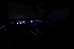 Design: Natsort, AMG Designlinje, 18" AMG letmetalfælge i 5-eget design, ARTICO kunstlæder/MICROCUT mikrofiber sort, Taghimmel sort, Fladbundet multifunktionssportsrat i nappalæder, AMG bundmåtter, Interiørliste med stjernemønster belyst, Interiørlister med belysning, Varmeisolerende og mørktonede ruder, Ambiente belysning (64 farver), Tagræling i poleret aluminium, Belyste trinlister med logo, Sikkerhed/miljø: Fodgængerbeskyttelse, PRE-SAFE, Tyveripakke, ISOFIX, Dæktryksovervågning, Tyverisikring varslingssystem, Knæairbag, Akustik advarsel, TIREFIT, Bagsædeseleindikator, Ladekabel (5 meter) til wallbox og offentlig ladning.