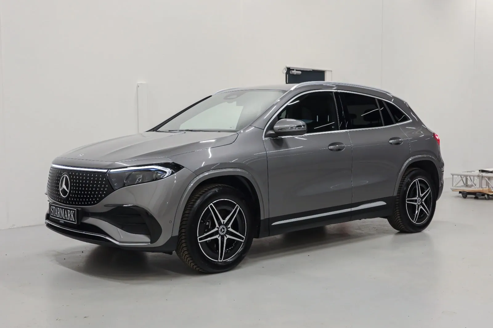 Design: Mountaingrå metallak, AMG Designlinje, 18" AMG letmetalfælge i 5-eget design, ARTICO kunstlæder/MICROCUT mikrofiber sort, Taghimmel sort, Fladbundet multifunktionssportsrat i nappalæder, AMG bundmåtter, Interiørliste med stjernemønster belyst, Interiørlister med belysning, Varmeisolerende og mørktonede ruder, Ambiente belysning (64 farver), Tagræling i poleret aluminium, Belyste trinlister med logo, Sikkerhed/miljø: Fodgængerbeskyttelse, PRE-SAFE, Tyveripakke, ISOFIX, Dæktryksovervågning, Tyverisikring varslingssystem, Knæairbag, Akustik advarsel, TIREFIT, Bagsædeseleindikator, Ladekabel (5 meter) til wallbox og offentlig ladning