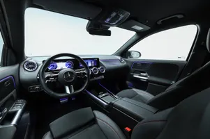 Design: Natsort, AMG Designlinje, 18" AMG letmetalfælge i 5-eget design, ARTICO kunstlæder/MICROCUT mikrofiber sort, Taghimmel sort, Fladbundet multifunktionssportsrat i nappalæder, AMG bundmåtter, Interiørliste med stjernemønster belyst, Interiørlister med belysning, Varmeisolerende og mørktonede ruder, Ambiente belysning (64 farver), Tagræling i poleret aluminium, Belyste trinlister med logo, Sikkerhed/miljø: Fodgængerbeskyttelse, PRE-SAFE, Tyveripakke, ISOFIX, Dæktryksovervågning, Tyverisikring varslingssystem, Knæairbag, Akustik advarsel, TIREFIT, Bagsædeseleindikator, Ladekabel (5 meter) til wallbox og offentlig ladning.