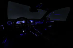 Design: Natsort, AMG Designlinje, 18" AMG letmetalfælge i 5-eget design, ARTICO kunstlæder/DINAMICA mikrofiber sort, Taghimmel sort, Fladbundet multifunktionssportsrat i nappalæder, AMG bundmåtter, Interiørliste med stjernemønster belyst, Interiørlister med belysning, Varmeisolerende og mørktonede ruder, Ambiente belysning (64 farver), Tagræling i poleret aluminium, Belyste trinlister med logo, Sikkerhed/miljø: Fodgængerbeskyttelse, PRE-SAFE, Tyveripakke, ISOFIX, Dæktryksovervågning, Tyverisikring varslingssystem, Knæairbag, Akustik advarsel, TIREFIT, Bagsædeseleindikator, Ladekabel (5 meter) til wallbox og offentlig ladning.