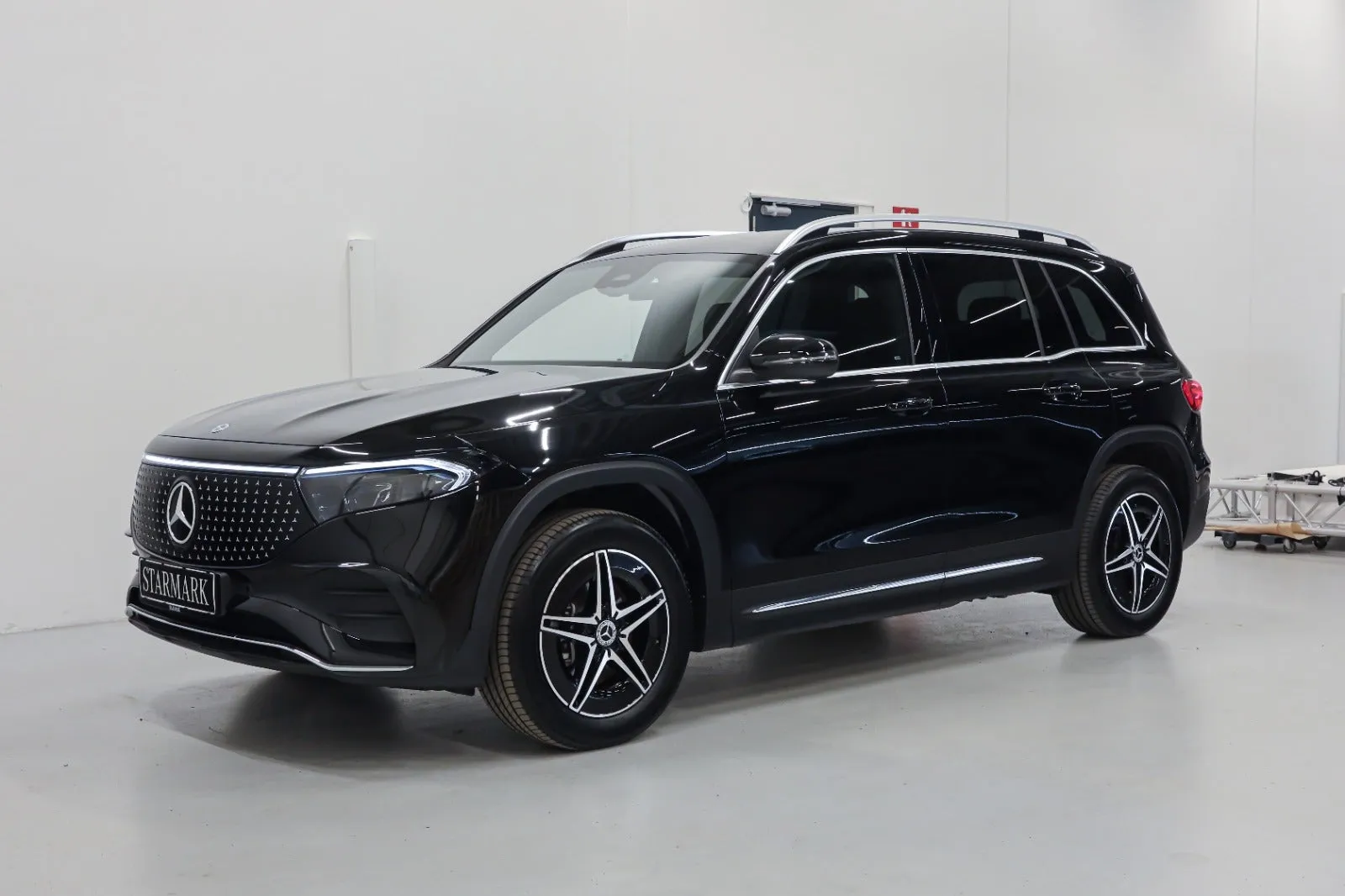 Design: Natsort, AMG Designlinje, 18" AMG letmetalfælge i 5-eget design, ARTICO kunstlæder/DINAMICA mikrofiber sort, Taghimmel sort, Fladbundet multifunktionssportsrat i nappalæder, AMG bundmåtter, Interiørliste med stjernemønster belyst, Interiørlister med belysning, Varmeisolerende og mørktonede ruder, Ambiente belysning (64 farver), Tagræling i poleret aluminium, Belyste trinlister med logo, Sikkerhed/miljø: Fodgængerbeskyttelse, PRE-SAFE, Tyveripakke, ISOFIX, Dæktryksovervågning, Tyverisikring varslingssystem, Knæairbag, Akustik advarsel, TIREFIT, Bagsædeseleindikator, Ladekabel (5 meter) til wallbox og offentlig ladning