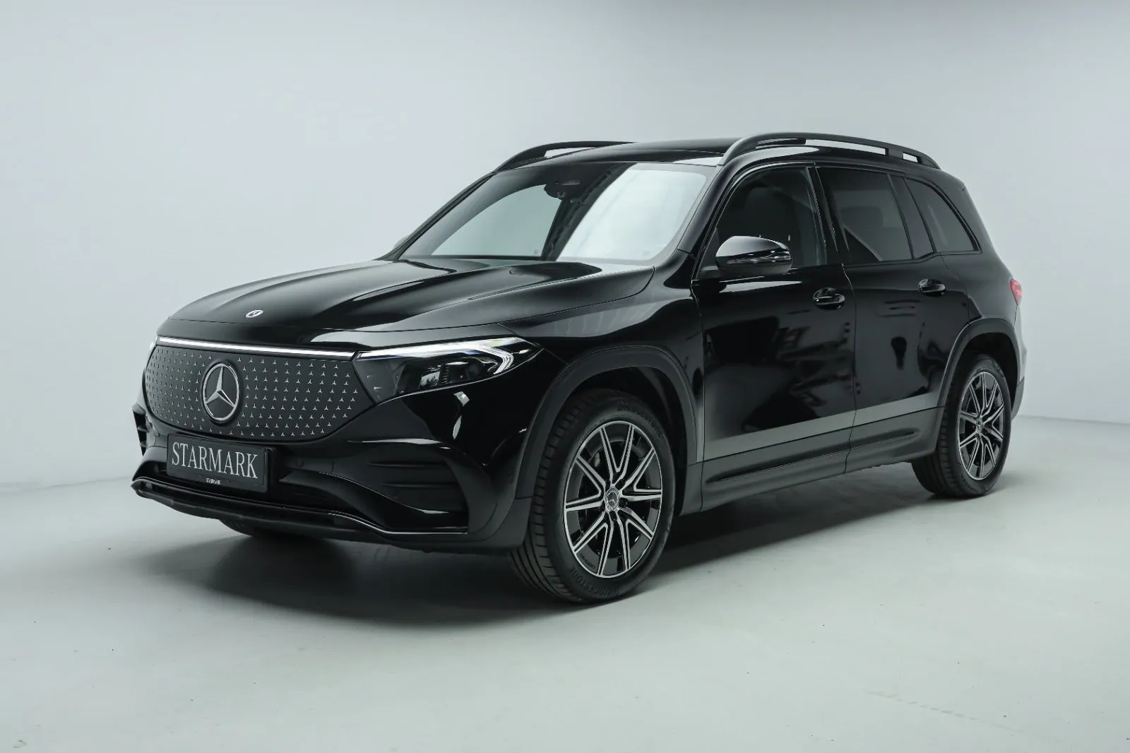 Design: Cosmossort metallak, AMG Designlinje, Nightpakke, 19" AMG letmetalfælge i 5-dobbelt eget design, ARTICO kunstlæder/DINAMICA mikrofiber sort, Taghimmel sort, Fladbundet multifunktionssportsrat i nappalæder, AMG bundmåtter, Interiørliste med stjernemønster belyst, Interiørlister med belysning, Varmeisolerende og mørktonede ruder, Ambiente belysning (64 farver), Tagræling i sort, Belyste trinlister med logo, Sikkerhed/miljø: Fodgængerbeskyttelse, ISOFIX, Dæktryksovervågning, Ildslukker, Knæairbag, Akustik advarsel, TIREFIT, Bagsædeseleindikator, 22 kW ladekabel (8 meter) til wallbox og offentlig ladning