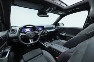 Design: Cosmossort metallak, AMG Designlinje, Nightpakke, 19" AMG letmetalfælge i 5-dobbelt eget design, ARTICO kunstlæder/DINAMICA mikrofiber sort, Taghimmel sort, Fladbundet multifunktionssportsrat i nappalæder, AMG bundmåtter, Interiørliste med stjernemønster belyst, Interiørlister med belysning, Varmeisolerende og mørktonede ruder, Ambiente belysning (64 farver), Tagræling i sort, Belyste trinlister med logo, Sikkerhed/miljø: Fodgængerbeskyttelse, ISOFIX, Dæktryksovervågning, Ildslukker, Knæairbag, Akustik advarsel, TIREFIT, Bagsædeseleindikator, 22 kW ladekabel (8 meter) til wallbox og offentlig ladning
