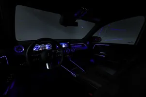 Design: Mountaingrå metallak, AMG Designlinje, Nightpakke, 18" AMG letmetalfælge i 5-eget design, ARTICO kunstlæder/DINAMICA mikrofiber sort, Taghimmel sort, Fladbundet multifunktionssportsrat i nappalæder, AMG bundmåtter, Interiørliste med stjernemønster belyst, Interiørlister med belysning, Varmeisolerende og mørktonede ruder, Ambiente belysning (64 farver), Tagræling i sort, Belyste trinlister med logo, Sikkerhed/miljø: Fodgængerbeskyttelse, PRE-SAFE, Tyveripakke, ISOFIX, Dæktryksovervågning, Tyverisikring varslingssystem, Knæairbag, Akustik advarsel, TIREFIT, Bagsædeseleindikator, Ladekabel (5 meter) til wallbox og offentlig ladning.