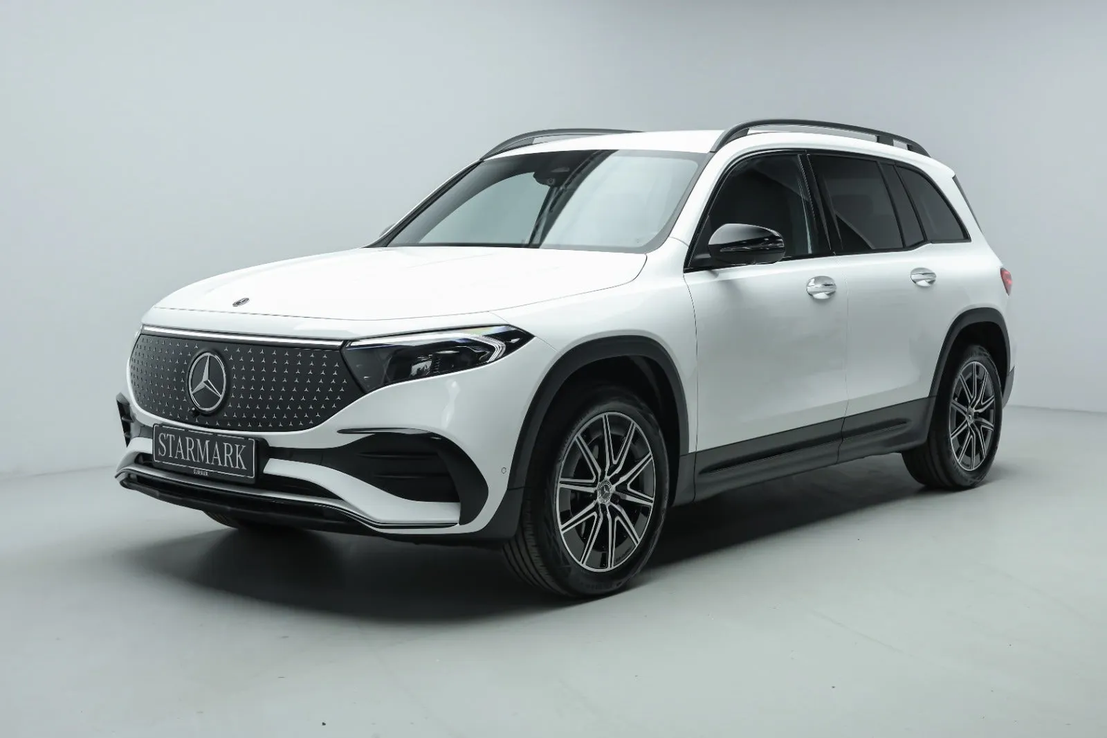 Design: Polarhvid, AMG Designlinje, Nightpakke, 19" AMG letmetalfælge i 5-dobbelt eget design, ARTICO kunstlæder/DINAMICA mikrofiber sort, Taghimmel sort, Fladbundet multifunktionssportsrat i nappalæder, AMG bundmåtter, Interiørliste med stjernemønster belyst, Interiørlister med belysning, Varmeisolerende og mørktonede ruder, Ambiente belysning (64 farver), Tagræling i sort, Projektion af logo, Belyste trinlister med logo, Sikkerhed/miljø: Fodgængerbeskyttelse, PRE-SAFE, ISOFIX, Dæktryksovervågning, Side airbags bag, Knæairbag, Akustik advarsel, TIREFIT, Bagsædeseleindikator, Ladekabel (8 meter) til wallbox og offentlig ladning
