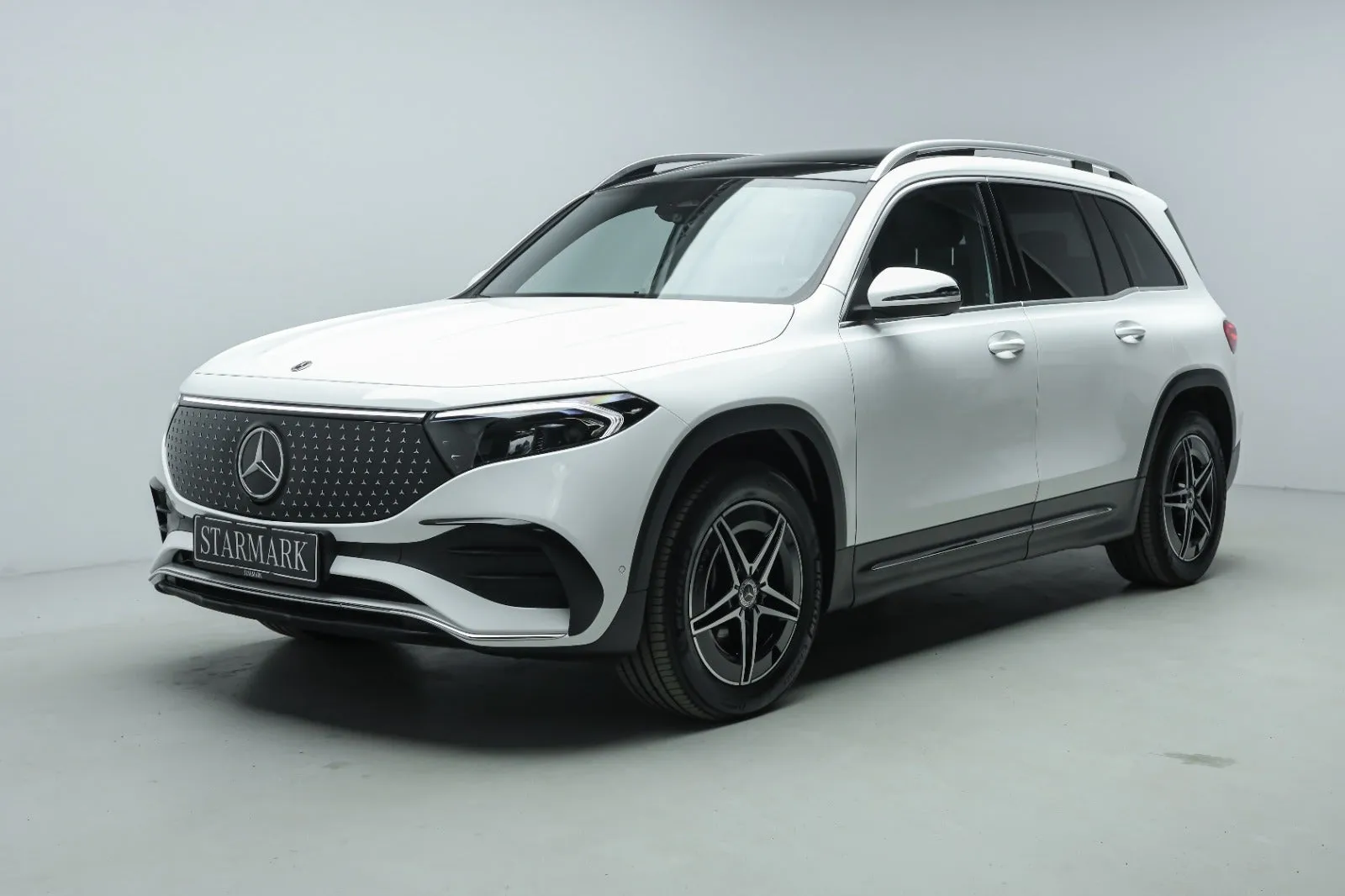 Design: Polarhvid, AMG Designlinje, 18" AMG letmetalfælge i 5-eget design, ARTICO kunstlæder/DINAMICA mikrofiber sort, Taghimmel sort, Fladbundet multifunktionssportsrat i nappalæder, AMG bundmåtter, Interiørliste med stjernemønster belyst, Interiørlister med belysning, Varmeisolerende og mørktonede ruder, Ambiente belysning (64 farver), Tagræling i poleret aluminium, Belyste trinlister med logo, Sikkerhed/miljø: Fodgængerbeskyttelse, PRE-SAFE, Tyveripakke, ISOFIX, Dæktryksovervågning, Tyverisikring varslingssystem, Knæairbag, Akustik advarsel, TIREFIT, Bagsædeseleindikator, Ladekabel (5 meter) til wallbox og offentlig ladning.
