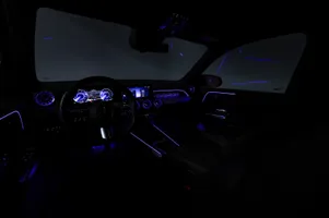 Design: Cosmossort metallak, AMG Designlinje, 18" AMG letmetalfælge i 5-eget design, ARTICO kunstlæder/DINAMICA mikrofiber sort, Taghimmel sort, Fladbundet multifunktionssportsrat i nappalæder, AMG bundmåtter, Interiørliste med stjernemønster belyst, Interiørlister med belysning, Varmeisolerende og mørktonede ruder, Ambiente belysning (64 farver), Tagræling i poleret aluminium, Belyste trinlister med logo, Sikkerhed/miljø: Fodgængerbeskyttelse, PRE-SAFE, Tyveripakke, ISOFIX, Dæktryksovervågning, Tyverisikring varslingssystem, Knæairbag, Akustik advarsel, TIREFIT, Bagsædeseleindikator, Ladekabel (5 meter) til wallbox og offentlig ladning.