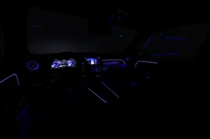 Design: Natsort, AMG Designlinje, 18" AMG letmetalfælge i 5-eget design, ARTICO kunstlæder/DINAMICA mikrofiber sort, Taghimmel sort, Fladbundet multifunktionssportsrat i nappalæder, AMG bundmåtter, Interiørliste med stjernemønster belyst, Interiørlister med belysning, Varmeisolerende og mørktonede ruder, Ambiente belysning (64 farver), Tagræling i poleret aluminium, Belyste trinlister med logo, Sikkerhed/miljø: Fodgængerbeskyttelse, PRE-SAFE, Tyveripakke, ISOFIX, Dæktryksovervågning, Tyverisikring varslingssystem, Knæairbag, Akustik advarsel, TIREFIT, Bagsædeseleindikator, Ladekabel (5 meter) til wallbox og offentlig ladning.