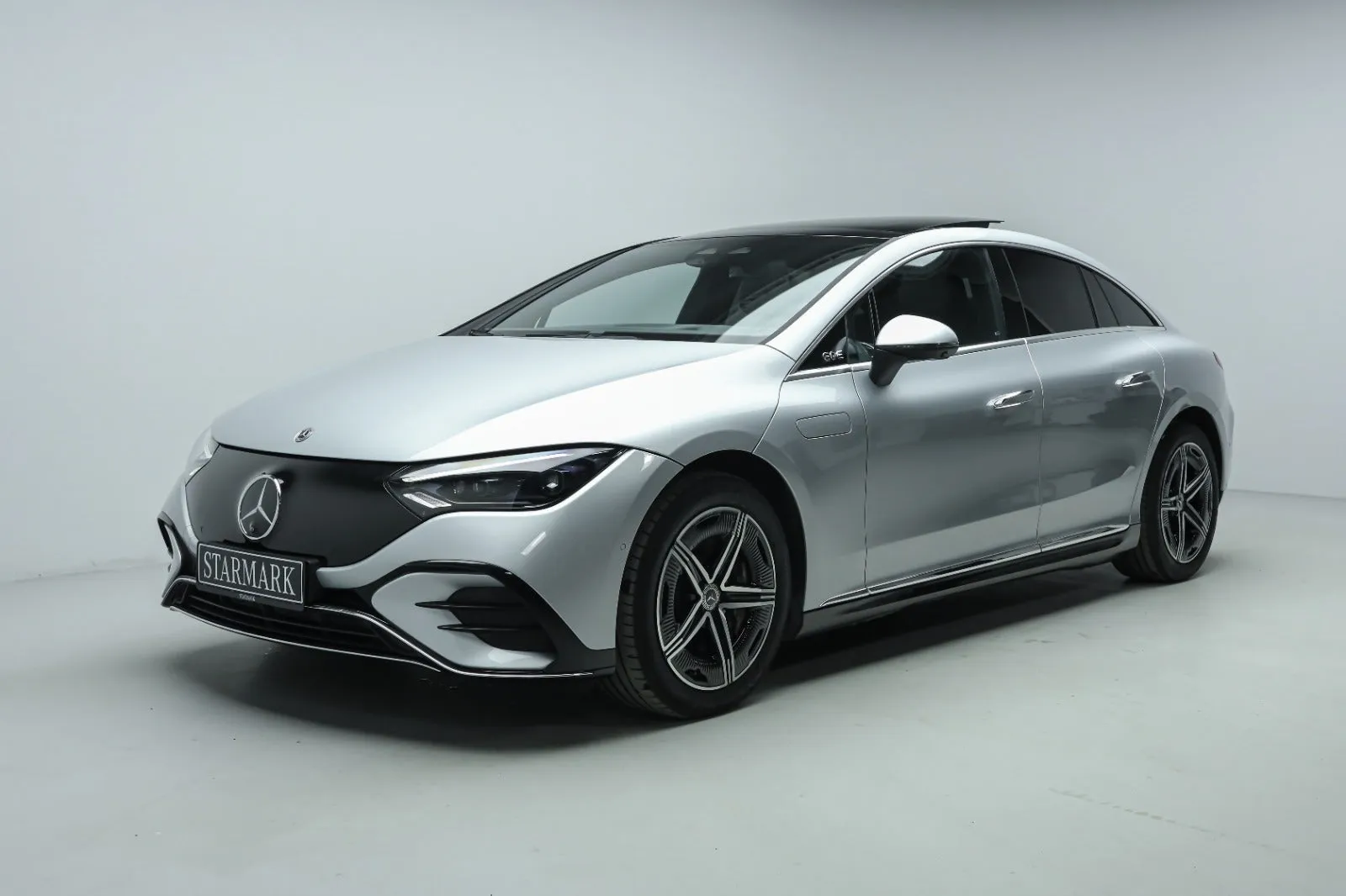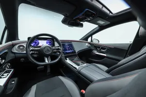 Design: High-tech sølv metallak, AMG eksteriør, AMG interiør, 19" letmetalfælge, ARTICO kunstlæder/MICROCUT mikrofiber sort/grå med røde topsyninger, Taghimmel sort, AMG multifunktionsrat i nappalæder med flad bund, Midterkonsol i sort bølgeoptik, AMG bundmåtter, Interiørlister i antracitgrå lindetræ med linjestruktur, Varmeisolerende og mørktonede ruder, Aktiv ambientebelysning, Projektion af Mercedes-Benz stjerne fra sidespejle, Belyste trinlister med logo, Sikkerhed/miljø: Fodgængerbeskyttelse, PRE-SAFE, Tyveripakke PLUS, ISOFIX, Dæktryksovervågning, Bortslæbningsbeskyttelse, Knæairbag, Udvendig lydgenerator, TIREFIT, Bagsædeseleindikator, Ladekabel (5 meter) til wallbox og offentlig ladning