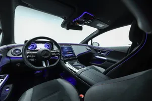 Design: High-tech sølv metallak, AMG eksteriør, AMG interiør, 19" AMG letmetalfælge i dobbelt 5-eget AERO design i sort, ARTICO kunstlæder/MICROCUT mikrofiber sort/grå med røde topsyninger, Taghimmel sort, AMG multifunktionsrat i nappalæder med flad bund, Midterkonsol i sort bølgeoptik, AMG bundmåtter, Interiørlister i antracitgrå lindetræ med linjestruktur, Varmeisolerende og mørktonede ruder, Ambientebelysning Premium, Kølergrill med Mercedes-stjerne mønster, Projektion af Mercedes-Benz stjerne fra sidespejle, Belyste trinlister med logo, Sikkerhed/miljø: Fodgængerbeskyttelse, PRE-SAFE, Tyveripakke, ISOFIX, Dæktryksovervågning, Bortslæbningsbeskyttelse, Knæairbag, Udvendig lydgenerator, TIREFIT, Bagsædeseleindikator, Ladekabel (5 meter) til wallbox og offentlig ladning.