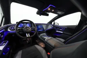 Design: Polarhvid, AMG eksteriør, AMG interiør, Nightpakke, 19" AMG letmetalfælge i dobbelt 5-eget AERO design i sort, ARTICO kunstlæder/MICROCUT mikrofiber sort/grå med røde topsyninger, Taghimmel sort, AMG multifunktionsrat i nappalæder med flad bund, Midterkonsol i sort bølgeoptik, AMG bundmåtter, Interiørlister i sort med lyseffekt og Mercedes-stjerne mønster, Interiørlister med belysning, Varmeisolerende og mørktonede ruder, Ambientebelysning Premium, Kølergrill med Mercedes-stjerne mønster, Projektion af Mercedes-Benz stjerne fra sidespejle, Belyste trinlister med logo, Sikkerhed/miljø: Fodgængerbeskyttelse, PRE-SAFE, Tyveripakke, ISOFIX, Dæktryksovervågning, Tyverisikring varslingssystem, Knæairbag, Udvendig lydgenerator, TIREFIT, Bagsædeseleindikator, Ladekabel (5 meter) til wallbox og offentlig ladning.
