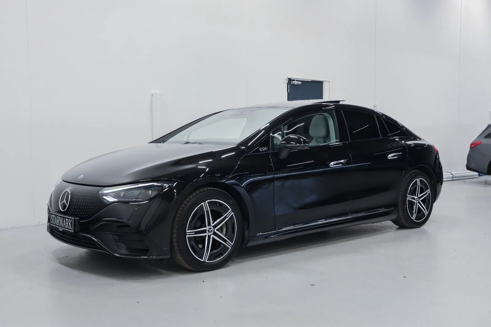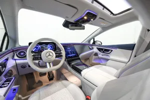 Design: Obsidiansort metallak, AMG eksteriør, AMG interiør, Nightpakke, 19" AMG letmetalfælge i dobbelt 5-eget AERO design i sort, AMG spoilerkant, Læder nevagrå/biscayblå, Taghimmel nevagrå, AMG multifunktionsrat i nappalæder med flad bund, Midterkonsol i sort højglans, AMG bundmåtter, Interiørlister i sort med lyseffekt og Mercedes-stjerne mønster, Interiørlister med belysning, Varmeisolerende og mørktonede ruder, Aktiv ambientebelysning, Kølergrill med Mercedes-stjerne mønster, Projektion af Mercedes-Benz stjerne fra sidespejle, Belyste trinlister med logo, Sikkerhed/miljø: Fodgængerbeskyttelse, PRE-SAFE, Tyveripakke PLUS, ISOFIX, Dæktryksovervågning, Tyverisikring varslingssystem, Knæairbag, Udvendig lydgenerator, TIREFIT, Bagsædeseleindikator, Ladekabel (5 meter) til wallbox og offentlig ladning.