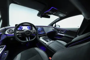 Design: Obsidiansort metallak, AMG eksteriør, AMG interiør, 19" AMG letmetalfælge i dobbelt 5-eget AERO design i sort, ARTICO kunstlæder/MICROCUT mikrofiber sort/grå med røde topsyninger, Taghimmel sort, AMG multifunktionsrat i nappalæder med flad bund, Midterkonsol i sort bølgeoptik, AMG bundmåtter, Interiørlister i sort med lyseffekt og Mercedes-stjerne mønster, Interiørlister med belysning, Varmeisolerende og mørktonede ruder, Ambientebelysning Premium, Kølergrill med Mercedes-stjerne mønster, Projektion af Mercedes-Benz stjerne fra sidespejle, Belyste trinlister med logo, Sikkerhed/miljø: Fodgængerbeskyttelse, PRE-SAFE, Tyveripakke, ISOFIX, Dæktryksovervågning, Tyverisikring varslingssystem, Knæairbag, Udvendig lydgenerator, TIREFIT, Bagsædeseleindikator, Ladekabel (5 meter) til wallbox og offentlig ladning.