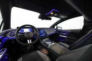 Design: Selenitgrå metallak, AMG eksteriør, AMG interiør, 19" AMG letmetalfælge i dobbelt 5-eget AERO design i sort, ARTICO kunstlæder/MICROCUT mikrofiber sort/grå med røde topsyninger, Taghimmel sort, AMG multifunktionsrat i nappalæder med flad bund, Midterkonsol i sort bølgeoptik, AMG bundmåtter, Interiørlister i antracitgrå lindetræ med linjestruktur, Varmeisolerende og mørktonede ruder, Ambientebelysning Premium, Kølergrill med Mercedes-stjerne mønster, Projektion af Mercedes-Benz stjerne fra sidespejle, Belyste trinlister med logo, Sikkerhed/miljø: Fodgængerbeskyttelse, PRE-SAFE, Tyveripakke, ISOFIX, Dæktryksovervågning, Tyverisikring varslingssystem, Knæairbag, Udvendig lydgenerator, TIREFIT, Bagsædeseleindikator, Ladekabel (5 meter) til wallbox og offentlig ladning.