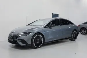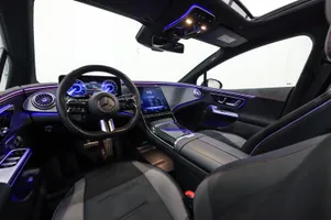 Design: Selenitgrå metallak, AMG eksteriør, AMG interiør, Nightpakke, 21" AMG letmetalfælge, ARTICO kunstlæder/MICROCUT mikrofiber sort/grå med røde topsyninger, Taghimmel sort, AMG multifunktionsrat i nappalæder med flad bund, Midterkonsol i sort bølgeoptik, AMG bundmåtter, Interiørlister i sort med lyseffekt og Mercedes-stjerne mønster, Interiørlister med belysning, Varmeisolerende og mørktonede ruder, Aktiv ambientebelysning, Projektion af Mercedes-Benz stjerne fra sidespejle, Belyste trinlister med logo, Sikkerhed/miljø: Fodgængerbeskyttelse, PRE-SAFE, Tyveripakke PLUS, ISOFIX, Dæktryksovervågning, Tyverisikring varslingssystem, Knæairbag, Udvendig lydgenerator, TIREFIT, Bagsædeseleindikator, Ladekabel (5 meter) til wallbox og offentlig ladning