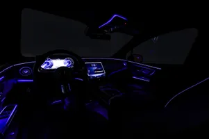 Design: Selenitgrå metallak, AMG eksteriør, AMG interiør, 20" AMG letmetalfælge i 5-dobbelt eget design, ARTICO kunstlæder/mikrofiber sort/space grey, Taghimmel sort, AMG multifunktionsrat i nappalæder med flad bund, Midterkonsol i sort-struktur, AMG bundmåtter, Interiørliste laser-cut med lyseffekt og Mercedes-Benz mønster, Interiørlister med belysning, Mørktonede ruder bag i, Ambientebelysning Premium, Kølergrill med Mercedes-Benz mønster, Projektion af Mercedes-Benz stjerne fra sidespejle, Belyste trinlister med logo, Sikkerhed/miljø: PRE-SAFE, Tyveripakke PLUS, ISOFIX, Dæktryksovervågning, Bortslæbningsbeskyttelse, Knæairbag, Udvendig lydgenerator, TIREFIT, Ladekabel (5 meter) til wallbox og offentlig ladning.