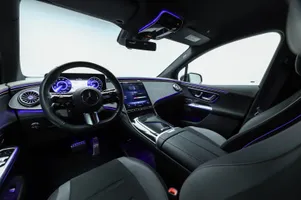 Design: Selenitgrå metallak, AMG eksteriør, AMG interiør, 20" AMG letmetalfælge i 5-dobbelt eget design, ARTICO kunstlæder/mikrofiber sort/space grey, Taghimmel sort, AMG multifunktionsrat i nappalæder med flad bund, Midterkonsol i sort-struktur, AMG bundmåtter, Interiørlister i antracitgrå lindetræ med linjestruktur, Mørktonede ruder bag i, Ambientebelysning Premium, Kølergrill med Mercedes-Benz mønster, Projektion af Mercedes-Benz stjerne fra sidespejle, Belyste trinlister med logo, Sikkerhed/miljø: PRE-SAFE, Tyveripakke PLUS, ISOFIX, Dæktryksovervågning, Bortslæbningsbeskyttelse, Knæairbag, Udvendig lydgenerator, TIREFIT, Ladekabel (8 meter) til wallbox og offentlig ladning
