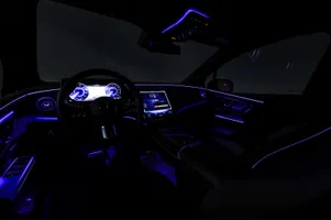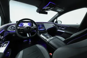 Design: Obsidiansort metallak, AMG eksteriør, AMG interiør, 20" AMG letmetalfælge i 5-dobbelt eget design, ARTICO kunstlæder/mikrofiber sort/space grey, Taghimmel sort, AMG multifunktionsrat i nappalæder med flad bund, Midterkonsol i sort-struktur, AMG bundmåtter, Interiørlister i antracitgrå lindetræ med linjestruktur, Mørktonede ruder bag i, Ambientebelysning Premium, Kølergrill med Mercedes-Benz mønster, Projektion af Mercedes-Benz stjerne fra sidespejle, Belyste trinlister med logo, Sikkerhed/miljø: PRE-SAFE, Tyveripakke PLUS, ISOFIX, Dæktryksovervågning, Bortslæbningsbeskyttelse, Knæairbag, Udvendig lydgenerator, TIREFIT, Ladekabel (5 meter) til wallbox og offentlig ladning