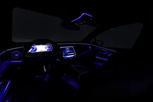 Design: Selenitgrå metallak, AMG eksteriør, AMG interiør, Nightpakke, 20" AMG letmetalfælge i 5-dobbelt eget design, ARTICO kunstlæder/mikrofiber sort/space grey, Taghimmel sort, AMG multifunktionsrat i nappalæder med flad bund, Midterkonsol i sort-struktur, AMG bundmåtter, Interiørlister i antracitgrå lindetræ med linjestruktur, Mørktonede ruder bag i, Ambientebelysning Premium, Kølergrill med Mercedes-Benz mønster, Projektion af Mercedes-Benz stjerne fra sidespejle, Belyste trinlister med logo, Sikkerhed/miljø: PRE-SAFE, Tyveripakke PLUS, ISOFIX, Dæktryksovervågning, Tyverisikring varslingssystem, Knæairbag, Udvendig lydgenerator, TIREFIT, Ladekabel (5 meter) til wallbox og offentlig ladning.